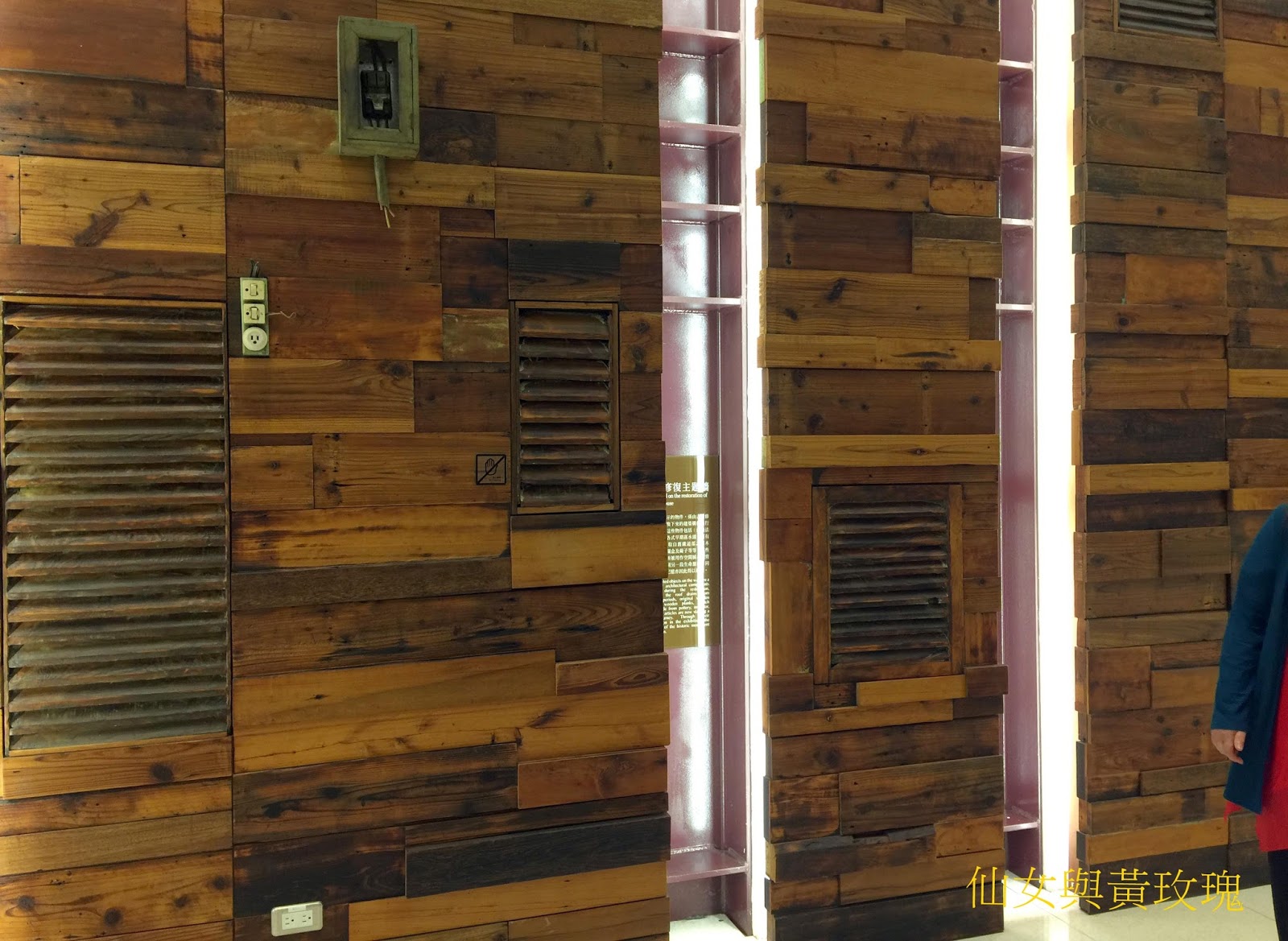 | 紅樓主題牆,由舊木料堆疊而成 |